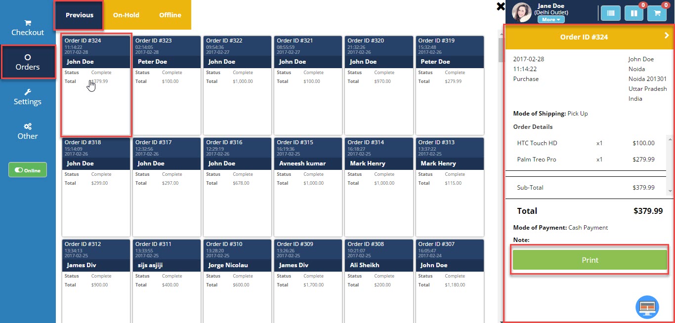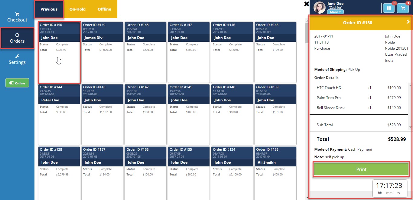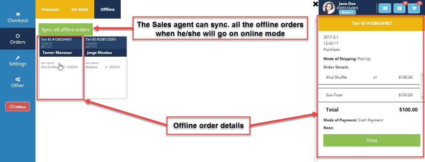 When you or cashier or sales agents have the internet connection or in online mode then you or they can sync all the offline orders to the online Invotide Store.