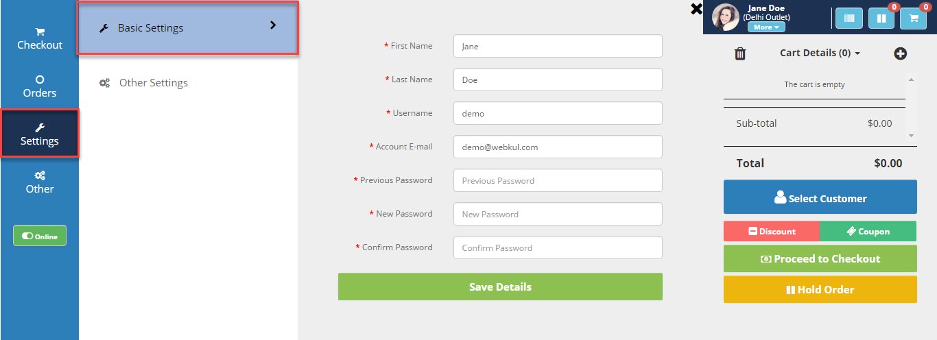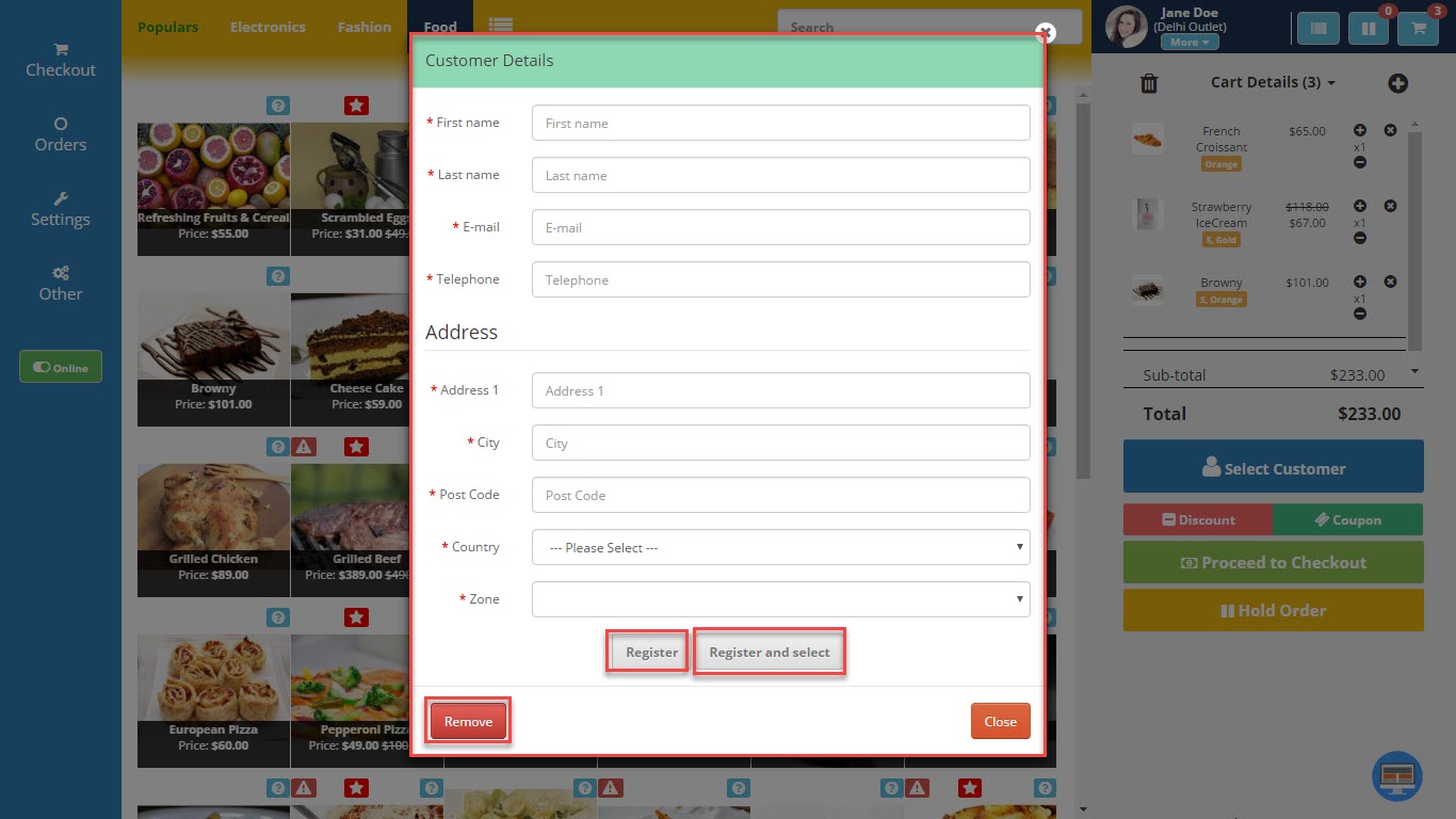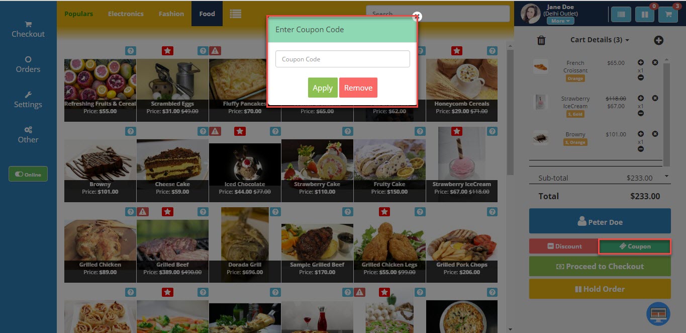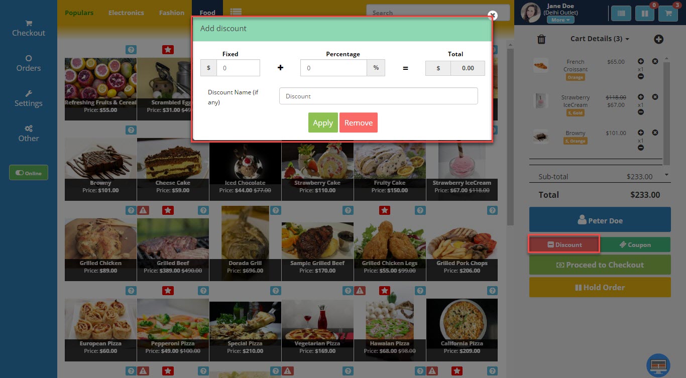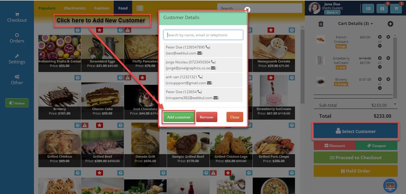 The Sales Agent can create multiple carts and can hold the transactions at any time. He/She can easily proceed to the next transaction/order without deleting the uncompleted order/hold order.